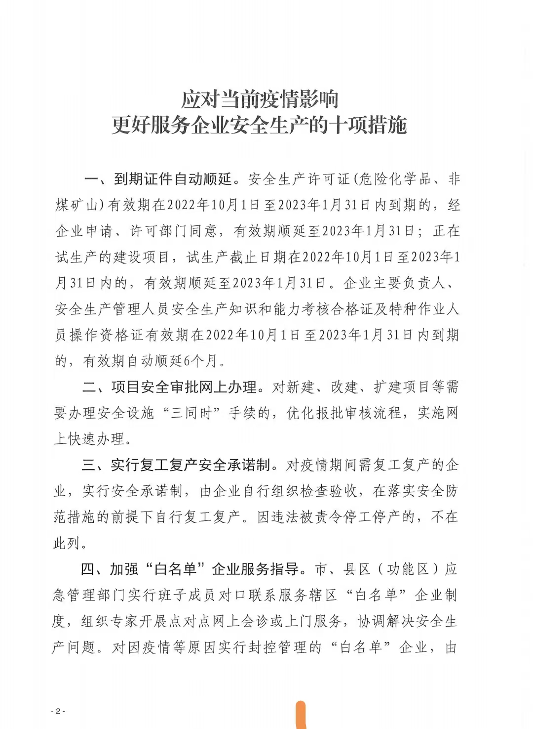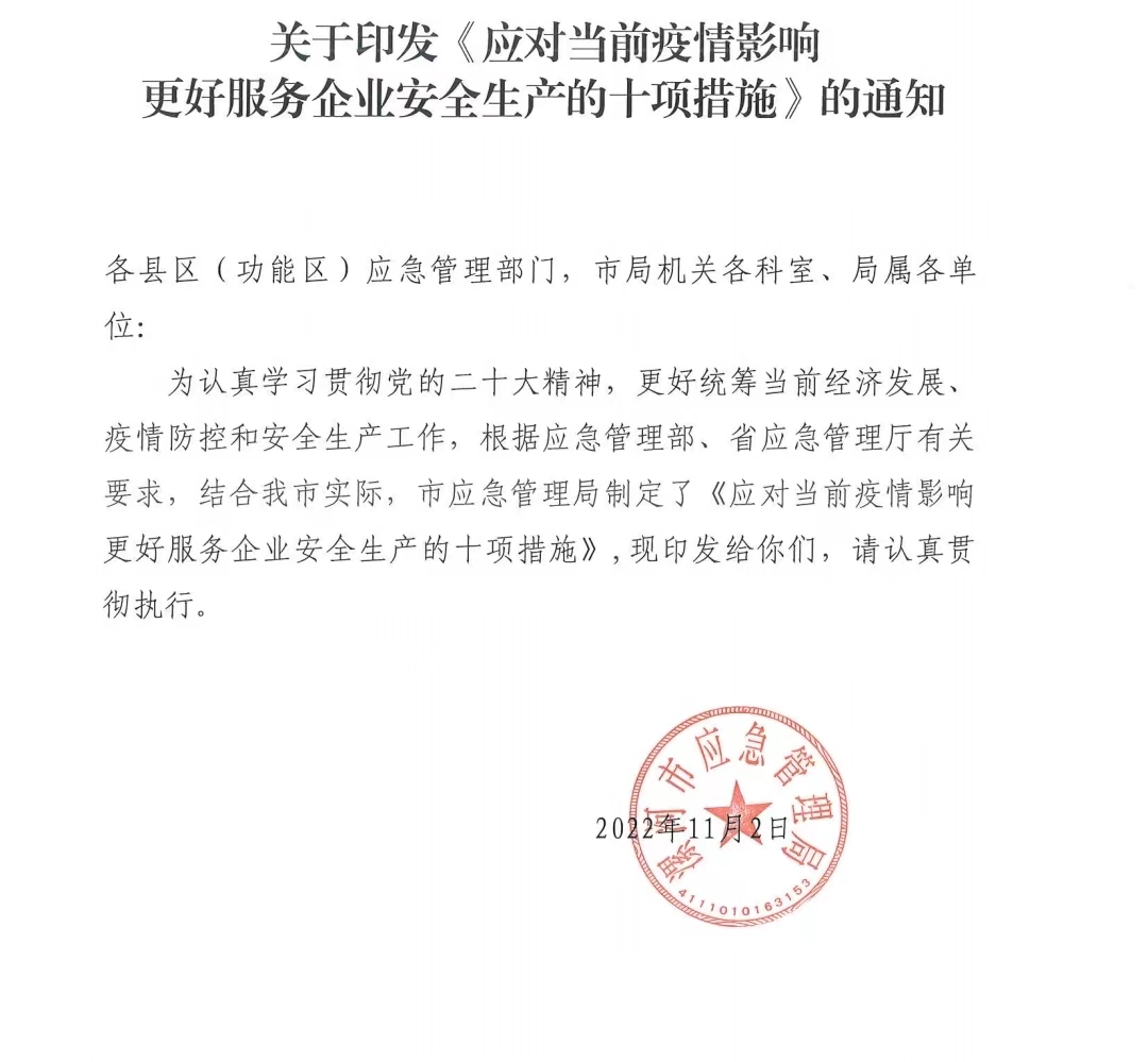關(guān)于印發(fā)《應(yīng)對疫情影響更好服務(wù)企業(yè)安全生產(chǎn)的十項措施》的通知