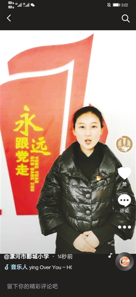 抖音上,該校黨支部組織委員劉娜分享了兒童團(tuán)員王二小的故事,陳美老師講述了特級(jí)英雄黃繼光的故事,孟舒老師分享了駐村第一書(shū)記黃文秀的故事,吳珂老師講述了抗日英雄趙伊坪的故事……一段段難以忘卻的歷史,一個(gè)個(gè)感人至深的故事,讓抖音終端的孩子們眼含熱淚,深受觸動(dòng)。