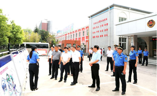 在市城市管理綜合執(zhí)法支隊院內(nèi),陳曉偉一行邊走邊看,一幅幅服務型執(zhí)法的匯報版面引得大家時時駐足,陳曉偉不時向陪同人員詢問,并對市城市管理綜合執(zhí)法支隊服務型執(zhí)法工作的成果連連稱贊。