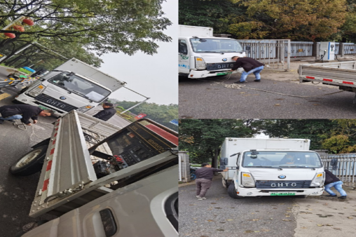 在市區(qū)駐點(diǎn)的劉照明同志在接到消息后,第一時(shí)間組織人手奔赴現(xiàn)場(chǎng)。一線員工在現(xiàn)場(chǎng)見(jiàn)到焦急等待的張師傅,告訴張師傅:“不要慌張。”然后駕駛公司的應(yīng)急通訊車(chē)把貨車(chē)拖到了市區(qū)駐點(diǎn),幫其解除了困境,避免了貨車(chē)司機(jī)的重大損失。