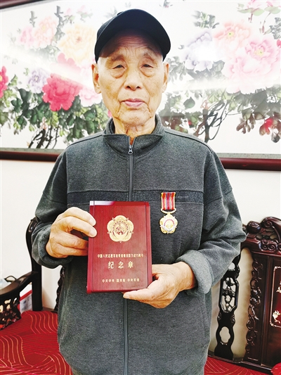 朱興旺展示抗美援朝出國作戰(zhàn)70周年紀(jì)念章。