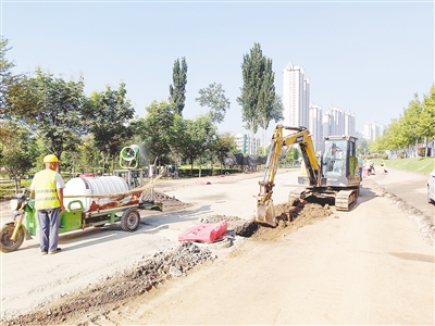 記者沿新加寬擴(kuò)建的濱河路向東看到,道路路基拓寬工作已經(jīng)完成,路面上各類工程車正在進(jìn)行作業(yè),運(yùn)送沙石的車輛往來穿梭,一片繁忙景象。為了防止工地?fù)P塵,每個(gè)機(jī)械作業(yè)區(qū)域都有噴霧灑水車伴隨降塵。
