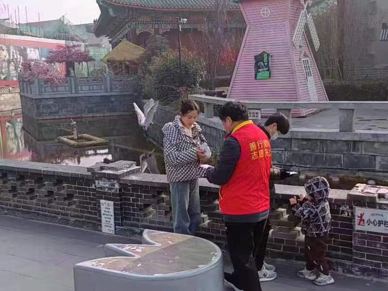 龍年春節(jié),在 河上街景區(qū)志愿者開(kāi)啟新的一年文明宣傳活動(dòng)。