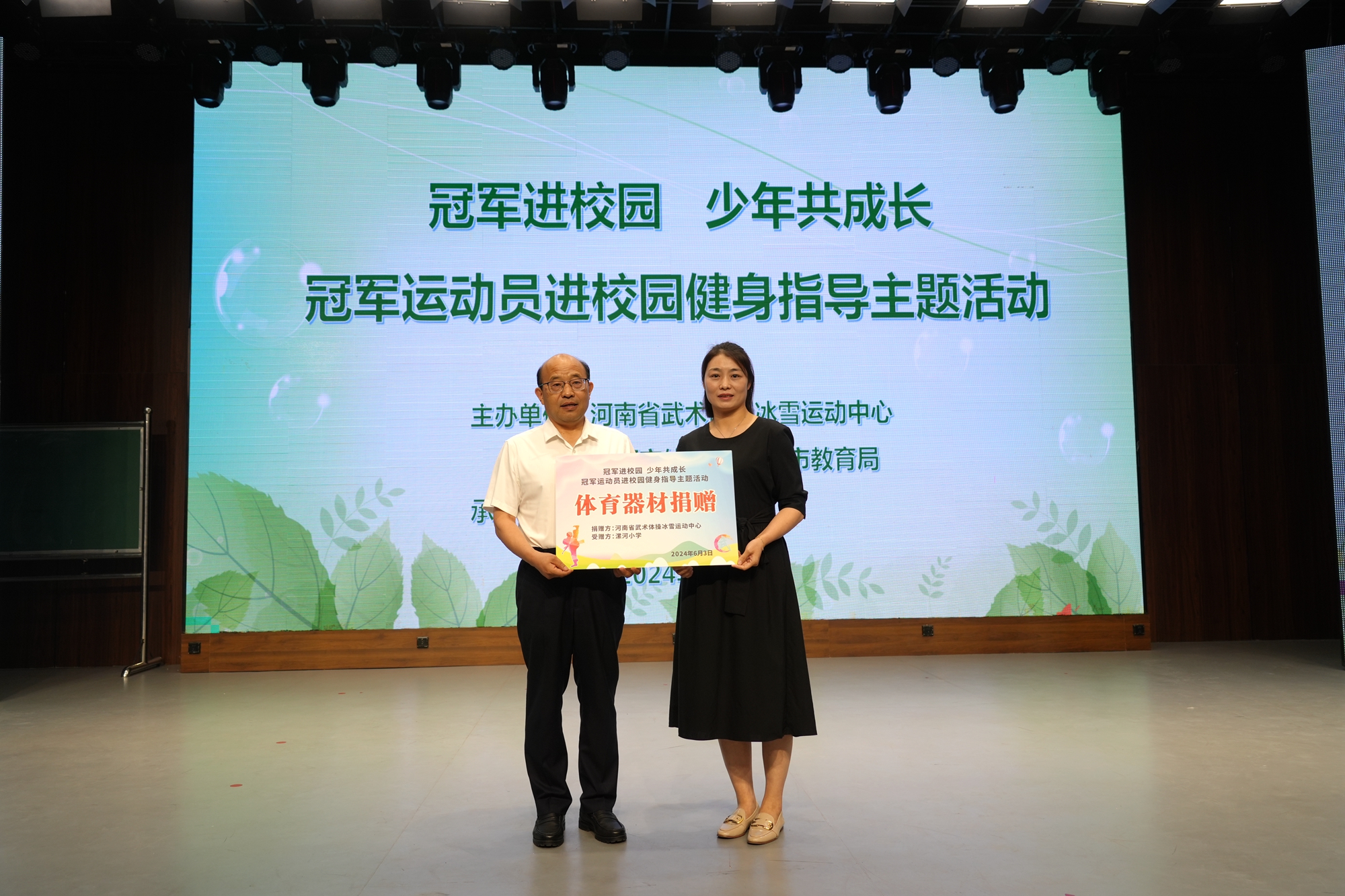 活動現(xiàn)場,河南省武術(shù)體操冰雪運動中心及漯河市體育局向?qū)W校贈送了籃球,以此表達對學校體育工作的支持和關心。隨后,孔洪星、申國順兩位冠軍在熱烈的掌聲和歡呼聲中走上舞臺,他們深情回顧了自己在武術(shù)散打道路上的奮斗歷程,分享了那些充滿挑戰(zhàn)和汗水的故事。這些真實而感人的經(jīng)歷深深觸動了在場的每一位師生,讓大家更加深刻地理解了冠軍榮耀背后的艱辛付出和頑強拼搏的精神。