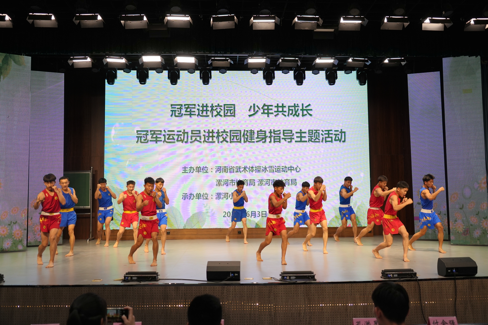 6月3日下午,漯河市培養(yǎng)輸送的世界武術(shù)散打冠軍孔洪星、申國順走進漯河小學,與該校師生進行了一場富有意義的互動活動。河南省武術(shù)體操冰雪運動中心副主任劉同濤,省武術(shù)體操冰雪運動中心紀檢專干李俊麗,漯河市文化廣電和旅游局(體育局)副局長付會強,漯河市教育局副局長郭俊偉,漯河市體育中心主任馬大草,漯河市教育局體衛(wèi)藝站站長陳國印,漯河小學黨總支書記丁俊生,漯河小學校長李蘊華出席本次活動。