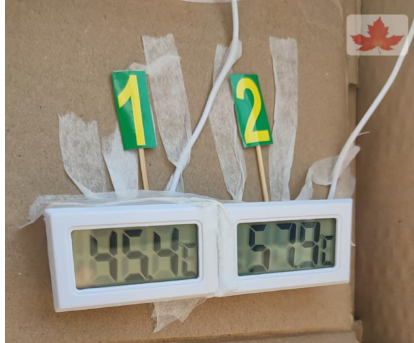 夏浩桐同學(xué)告訴記者:“去年秋天,我們觀賞紅楓葉時,偶然發(fā)現(xiàn)路兩側(cè)的五角楓樹干出現(xiàn)了蛻皮壞死現(xiàn)象。寒假期間,我們又對整條路的五角楓進(jìn)行了全面觀察和統(tǒng)計,發(fā)現(xiàn)壞死率竟然超過了65%。于是,我們就這個現(xiàn)象與學(xué)校張真老師進(jìn)行了討論。張老師非常支持,很快便成立了由她和我們四位學(xué)生組成的‘五角楓實驗小組’。”“我們小組多次實地調(diào)查、現(xiàn)場測試后發(fā)現(xiàn),在夏季太陽直射下,五角楓樹皮西側(cè)和南側(cè)的溫度差異巨大。比如現(xiàn)在下午3點,我們測得南側(cè)(1號線)電子測溫計顯示45.4℃,而西側(cè)(2號線)測溫計則顯示高達(dá)57.9℃,兩側(cè)溫差達(dá)到了12.5℃。”夏浩桐繼續(xù)說道,“我們小組經(jīng)過多次測試、記錄數(shù)據(jù),并查閱了大量資料,還借助了‘豆包’等AI工具進(jìn)行分析,最終發(fā)現(xiàn)了一些資料提到了‘日灼病’,即因太陽輻射溫度過高而導(dǎo)致的植物曬傷。我們認(rèn)為,這里的五角楓很可能就是患上了日灼病。”
