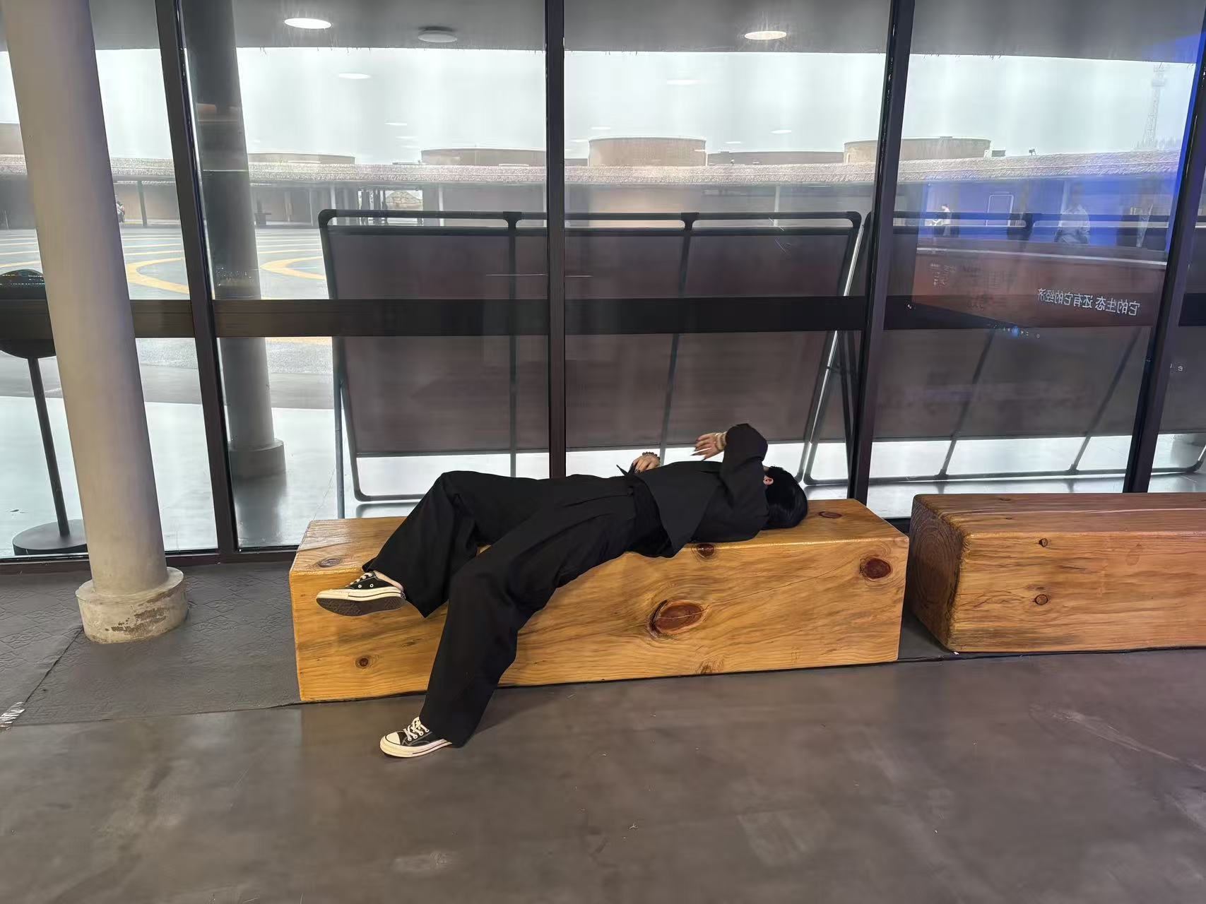 賈湖遺址博物館 有游客躺長椅行為