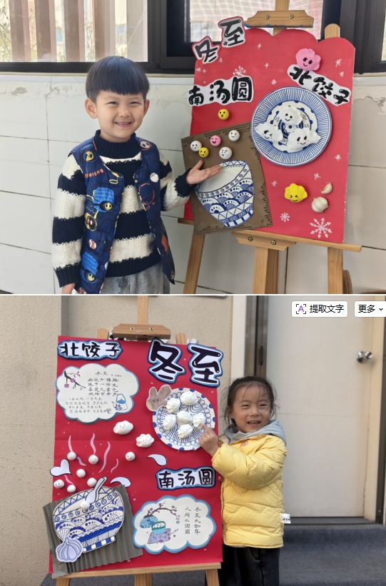 本次冬至主題系列活動(dòng)依據(jù)幼兒年齡特點(diǎn),設(shè)計(jì)了層次分明、趣味橫生、知行合一的活動(dòng)內(nèi)容,讓傳統(tǒng)文化在孩子們看一看、做一做、嘗一嘗的親身經(jīng)歷中變得可感、可知、可傳承。