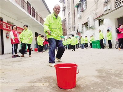 運乒乓球比賽,十分有趣,每名參賽選手手持垃圾夾,在規(guī)定時間內,把乒乓球一個個夾到一個紅桶里。“平時都是用垃圾夾夾垃圾,這次是夾乒乓球,更考驗眼力勁兒和手勁,夾不好就滑落了。”參賽選手朱先生說。