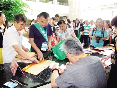 大家排隊購買郵票,并等待著名郵票設(shè)計家簽名。
