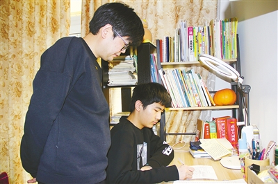 宋莉娟的丈夫李康在輔導(dǎo)兒子學(xué)習(xí)。
