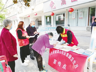 4月7日,郾城區(qū)沙北街道嵩山社居委通過健康教育宣傳欄等開展群眾性愛國衛(wèi)生運動宣傳活動。 記者 吳艷敏 攝