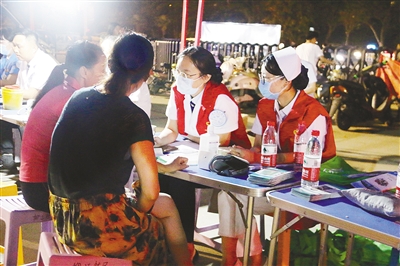 6月13日晚,漯河柳江醫(yī)院組織十多名醫(yī)護(hù)人員走進(jìn)市體育場(chǎng)夜間廣場(chǎng)消費(fèi)點(diǎn)開展義診活動(dòng)。