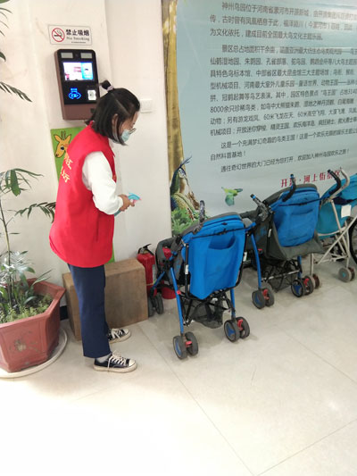 10月5日,市神州鳥園景區(qū)工作人員對景區(qū)公共物品進行消毒,做好疫情防控,倡導(dǎo)文明旅游。