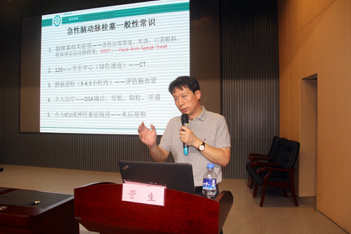 隨后,鄭州大學第一附屬醫(yī)院心血管內科專家李凌教授熱情洋溢地講述了《急性左心衰診治進展》,并結合自身經驗及最新心衰指南,深入淺出地介紹了“急性左心衰”的診療思路,詳細地論述了該病應如何去治?如何去防。神經介入科專家管生教授幽默風趣地從神經介入方向介紹了《心血管醫(yī)生應該了解的腦血管那些事》,并提出了“心腦同診、心腦同治”的新思路,為我市心腦血管的發(fā)展及防治提供了新的借鑒與思考。最后,心血管內科專家陶海龍教授細致、全面地介紹了“房顫的規(guī)范化治療”,他從“歷年指南房顫的治療要點、經典病例及房顫的介入治療”等方面闡釋了相關問題,為大家對房顫的治療及卒中的預防提供了新的思考。