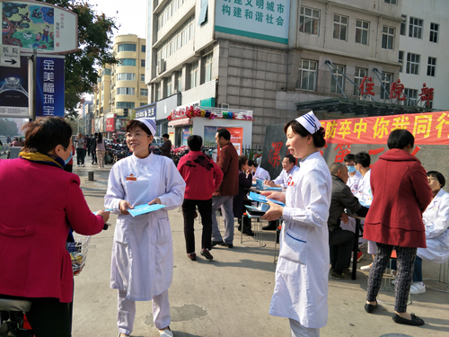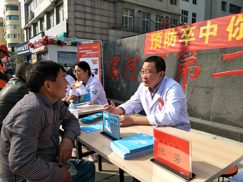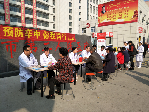 在第12個卒中日來臨之際,市二院組織神經(jīng)內(nèi)科呂杰民、張芳、張亞莉、孫艷霞等專家團(tuán)隊在醫(yī)院大門口舉辦大型義診宣傳活動。