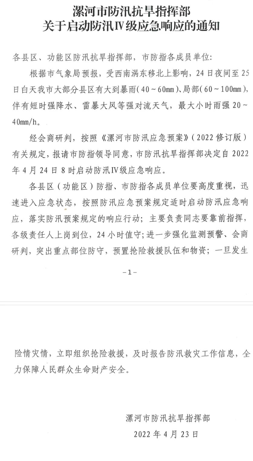 漯河發(fā)布啟動應(yīng)急響應(yīng)緊急通知!