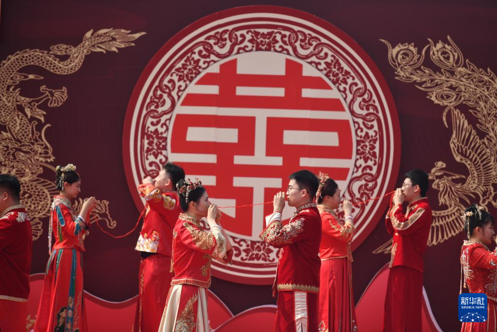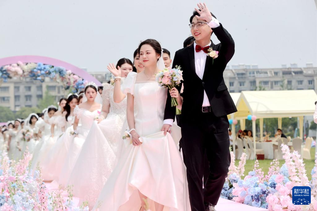 當(dāng)日是“520”,多地舉行集體婚禮,新人們?cè)谟H朋好友的見(jiàn)證與祝福下喜結(jié)連理。
