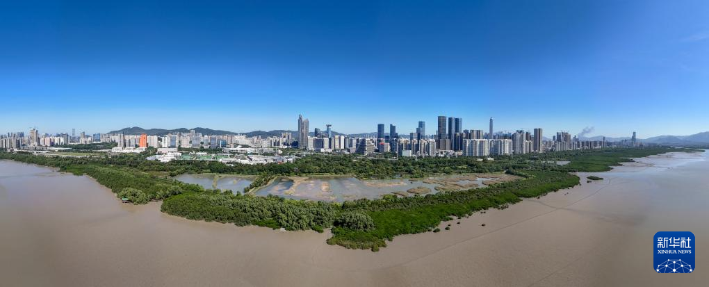 位于廣東深圳的福田紅樹林濕地(無人機全景照片,11月29日攝)。