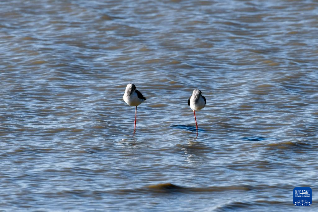 11月29日,在深圳紅樹林海濱生態(tài)公園,兩只黑翅長腳鷸在休息。