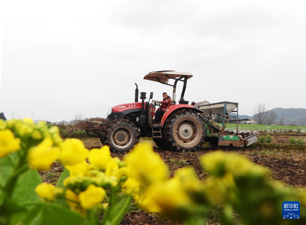 2月7日,在四川省達州市渠縣臨巴鎮(zhèn)四面村,村民駕駛農(nóng)機翻田準備播種玉米。