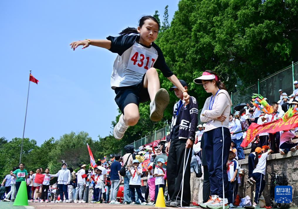5月30日,青島市實驗小學學生參加跳遠比賽。