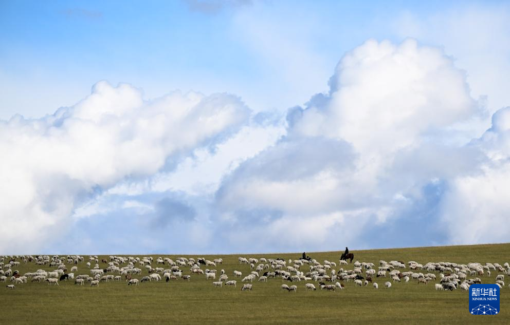 9月14日,牧民在內(nèi)蒙古呼倫貝爾市陳巴爾虎旗草原上放牧。