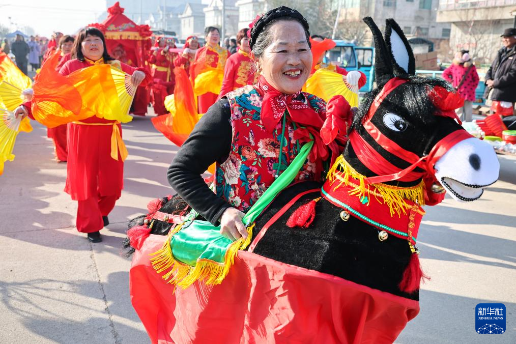 2月2日,在江蘇省連云港市贛榆區(qū)墩尚鎮(zhèn)鄉(xiāng)村大集上,民間藝人進(jìn)行趕毛驢表演。
