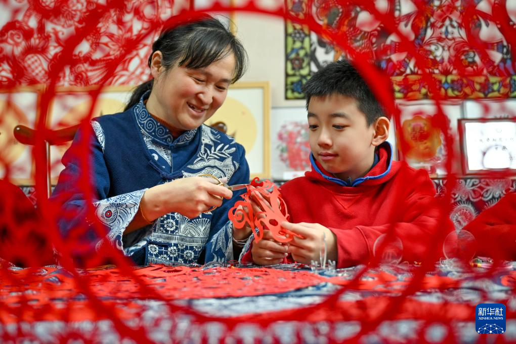 2月3日,在貴州省貴陽市省府路小學(xué),學(xué)生在老師的指導(dǎo)下創(chuàng)作馬年主題剪紙作品。