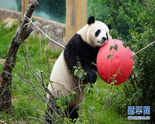 攝影師為大熊貓拍生日寫真 玩耍