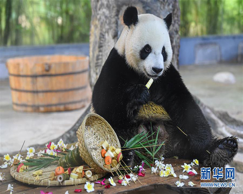 海南熊貓兄弟“貢貢”“舜舜”吃