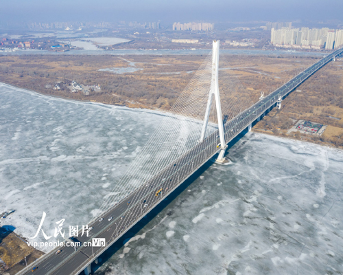 松花江哈爾濱段江面冰雪消融