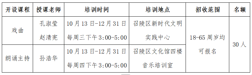 為進一步提升公共文化服務(wù)質(zhì)量,推進全民藝術(shù)普及,提高全民藝術(shù)文化水平,展示新時代召陵發(fā)展的新實踐新作為新形象,現(xiàn)計劃面向全區(qū)招收2025年公益培訓(xùn)班學(xué)員,名額有限,歡迎咨詢報名,具體安排如下: