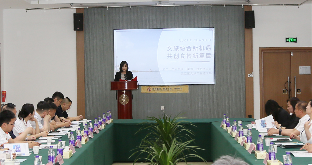 齊琳同志圍繞源匯區(qū)文旅產(chǎn)業(yè)發(fā)展現(xiàn)狀及優(yōu)勢作了專題宣傳推介,簡要介紹近年來源匯區(qū)堅持“文化點亮城市、產(chǎn)業(yè)彰顯特色、創(chuàng)新引領(lǐng)未來”發(fā)展理念,立足“文商旅創(chuàng)融合中心區(qū)”發(fā)展定位,高起點站位、高標準謀劃、高質(zhì)量推進,做好文旅文創(chuàng)融合文章,積極培育文旅文創(chuàng)消費新業(yè)態(tài)新場景,全力推動文旅產(chǎn)業(yè)鏈項目建設(shè),走出一條以文化人、以文興業(yè)的新路子。最后表示將以此次食博盛會為契機,以文旅融合為抓手,以食品文化為貫穿,依托轄區(qū)河上街景區(qū)和漯灣古鎮(zhèn)超高人氣和特色資源優(yōu)勢,持續(xù)豐富旅游產(chǎn)品和旅游供給,激發(fā)消費潛力,提升文化能級,擦亮文商旅創(chuàng)融合新名片,傾力將源匯區(qū)打造成“在者舒心、來者傾心、聞?wù)邉有?rdquo;的全國知名文化旅游目的地。